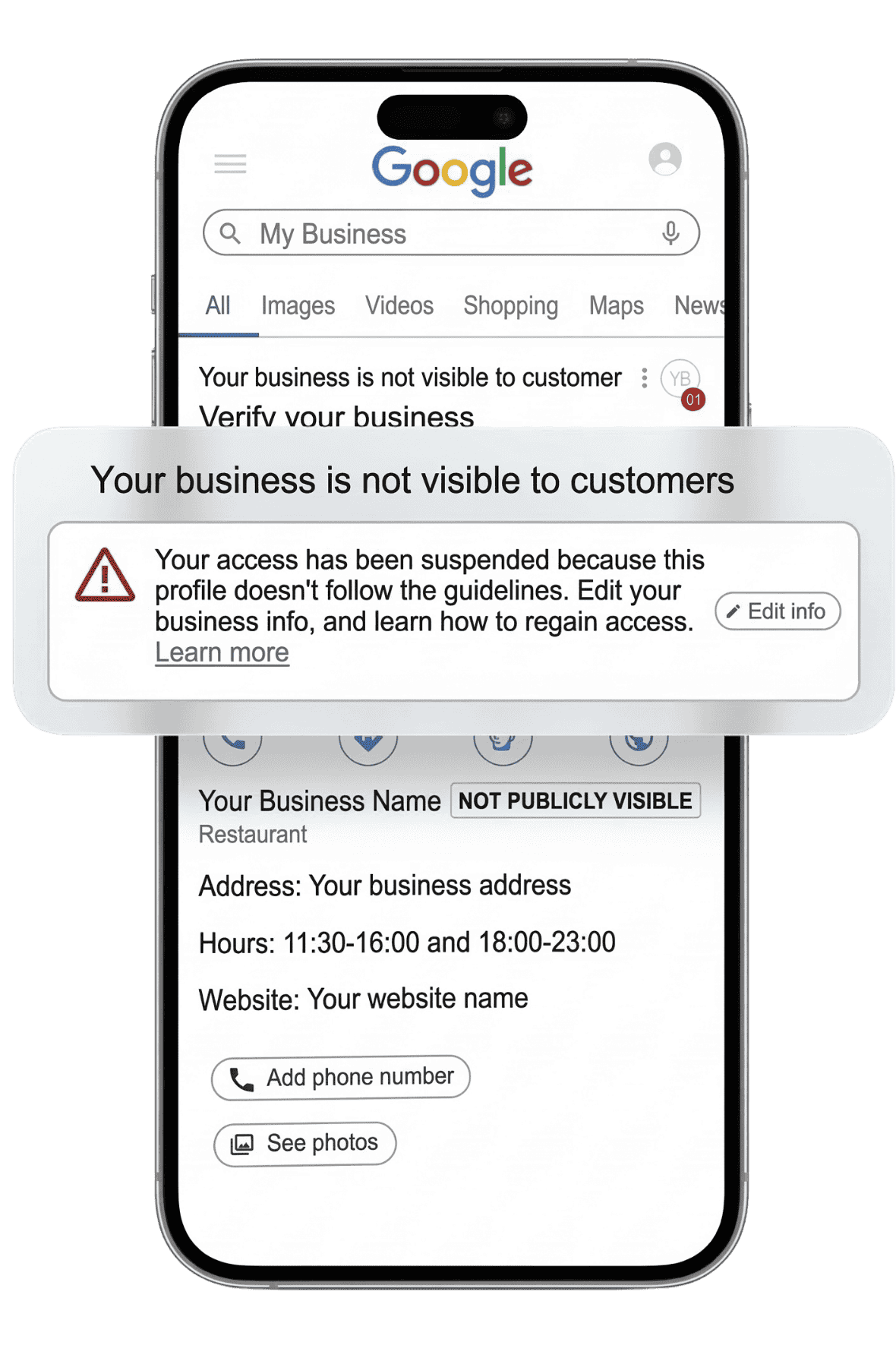 When a Google Business Profile gets suspended, the impact is immediate. Your listing may disappear from Google Maps, your business stops appearing in local search results, and customers can no longer find your profile when searching for your services.